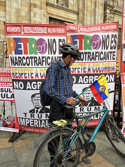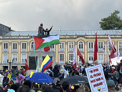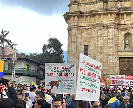 Mercoledì 7 gennaio 2026, piazze piene di cartelli e voci che rimbombano in lungo e largo il territorio colombiano contro gli attacchi verbali, speriamo che siano solo questo, del presidente gringo e delle sue presunzioni di potere e dominio, in una dimostrazione di sostegno al presidente Petro e a difesa dell’identità e della sovranità colombiane.