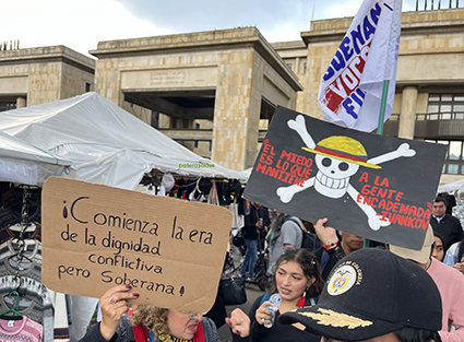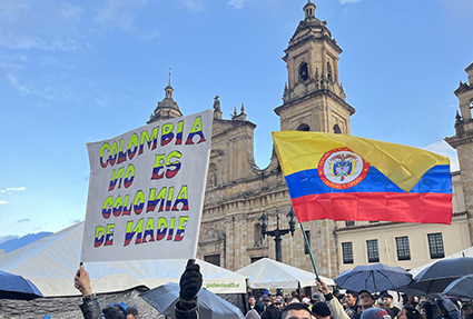 Parole e azioni popolari hanno riempito le strade e le piazze affinché si legga e si veda che il popolo colombiano è per la pace, la democrazia e la sovranità e contro la violenza, la menzogna e l’intromissione straniera nel proprio paese e nei propri affari.